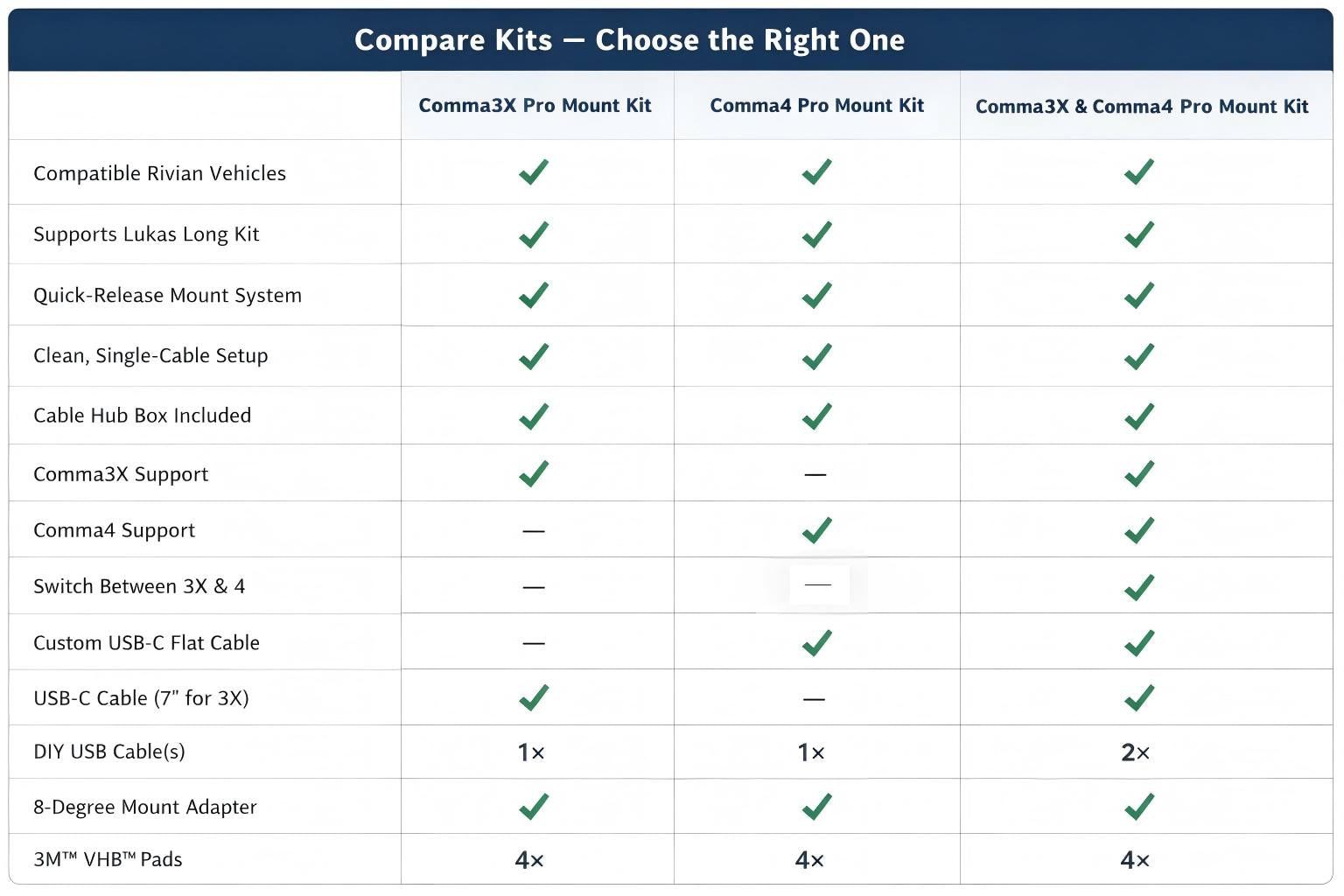 Comma3X&4 Pro Mount Kit: Supports seamless switching of Comma3X and Comma4 in one Rivian vehicle